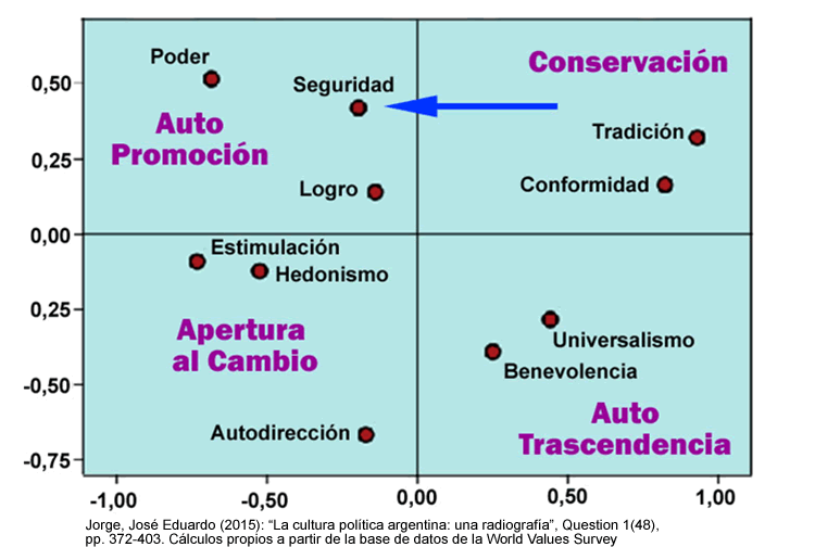 - Fuente: Jorge, José Eduardo (2015): “La cultura política argentina: una radiografía”, Question, 1(48), pp. 372-403.. Elaboración propia a partir de Schwartz (2007 y 1992)