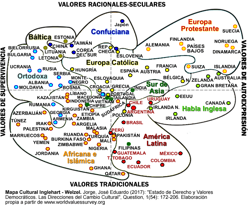 La principal conclusión es que la probabilidad de que un país tenga una democracia en la que rijan efectivamente los derechos de los ciudadanos depende del grado en que está difundido en la sociedad un sistema de valores de “autoexpresión” o “emancipación”.