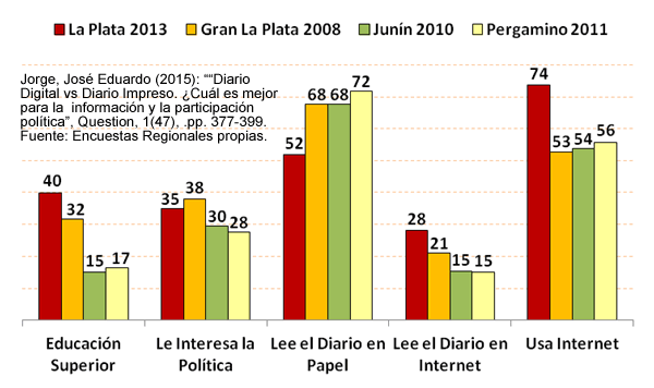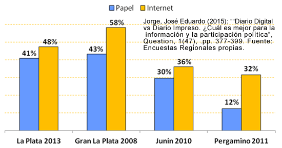- Fuente: Jorge, José Eduardo (2015): “Diario Digital vs Diario Impreso. ¿Cuál es mejor para la información y la participación política”, Question, 1(47), .pp. 377-399. Datos de Encuestas Regionales propias. Click en la imagen para agrandar